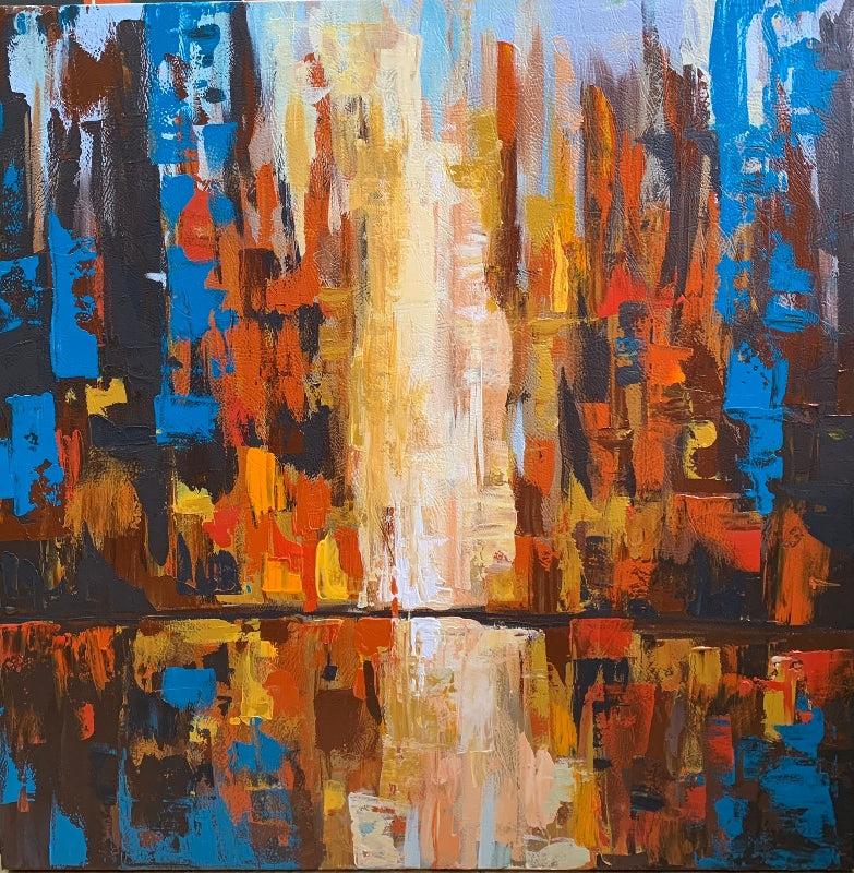 75x75 CM Acrylic Hand Painting on PU Leather